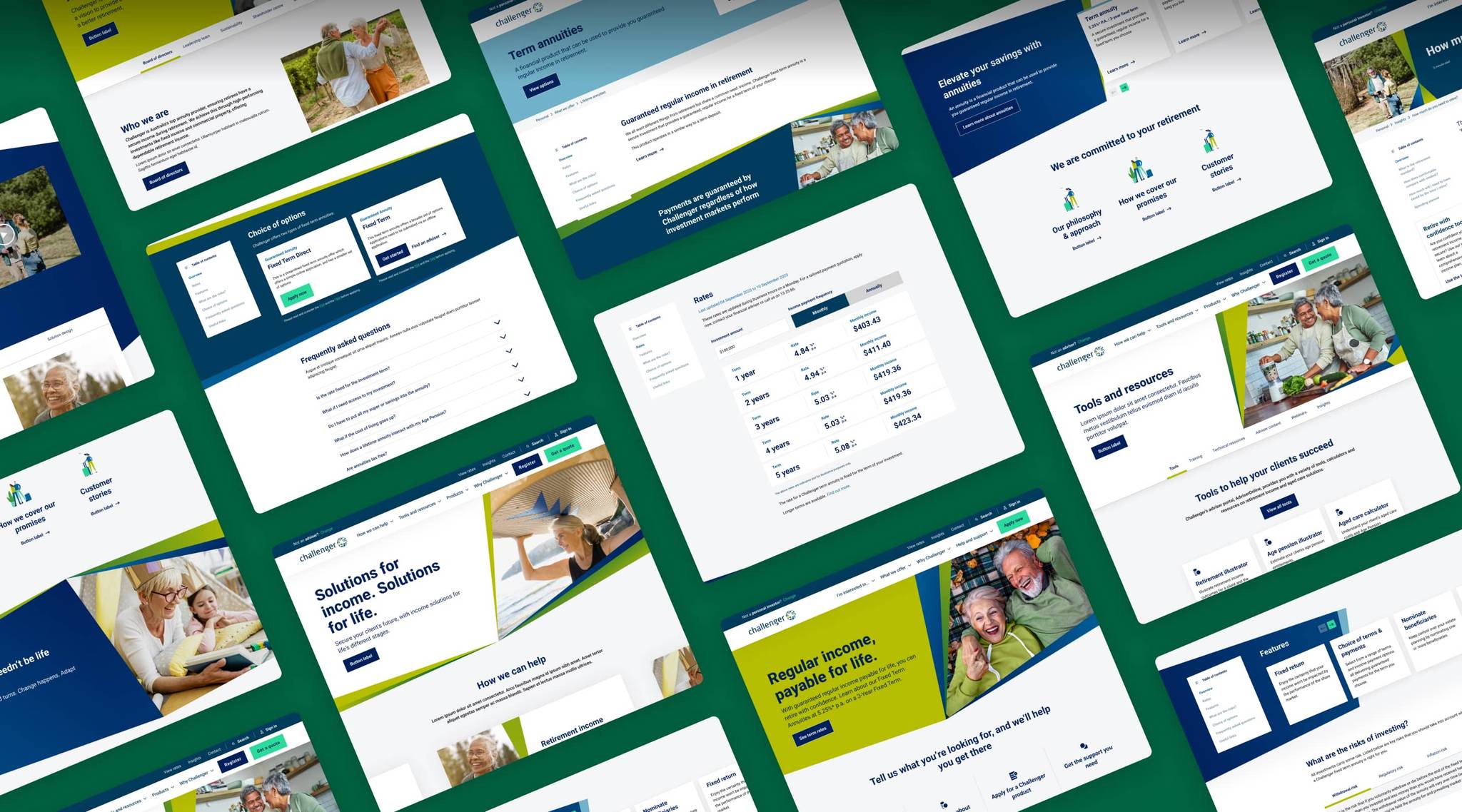 From crafting creative territories and refining brand elements to designing a cohesive visual system, every interaction was built to reflect Challenger's strategic vision. Deep-dive stakeholder workshops informed a data-driven approach to restructuring content, optimised through iterative testing and competitor insights. With a robust design system, a tiered content structure, and a smart recommendations engine, the new website was built for clarity, usability, and impact. Designed to serve four distinct user groups—consumers, advisers, institutional partners, and shareholders—it delivers a seamless experience. Note that while we provided a comprehensive design system and development handover, we were not directly involved in the implementation process, which meant some aspects of the final site deviated from our original vision.
